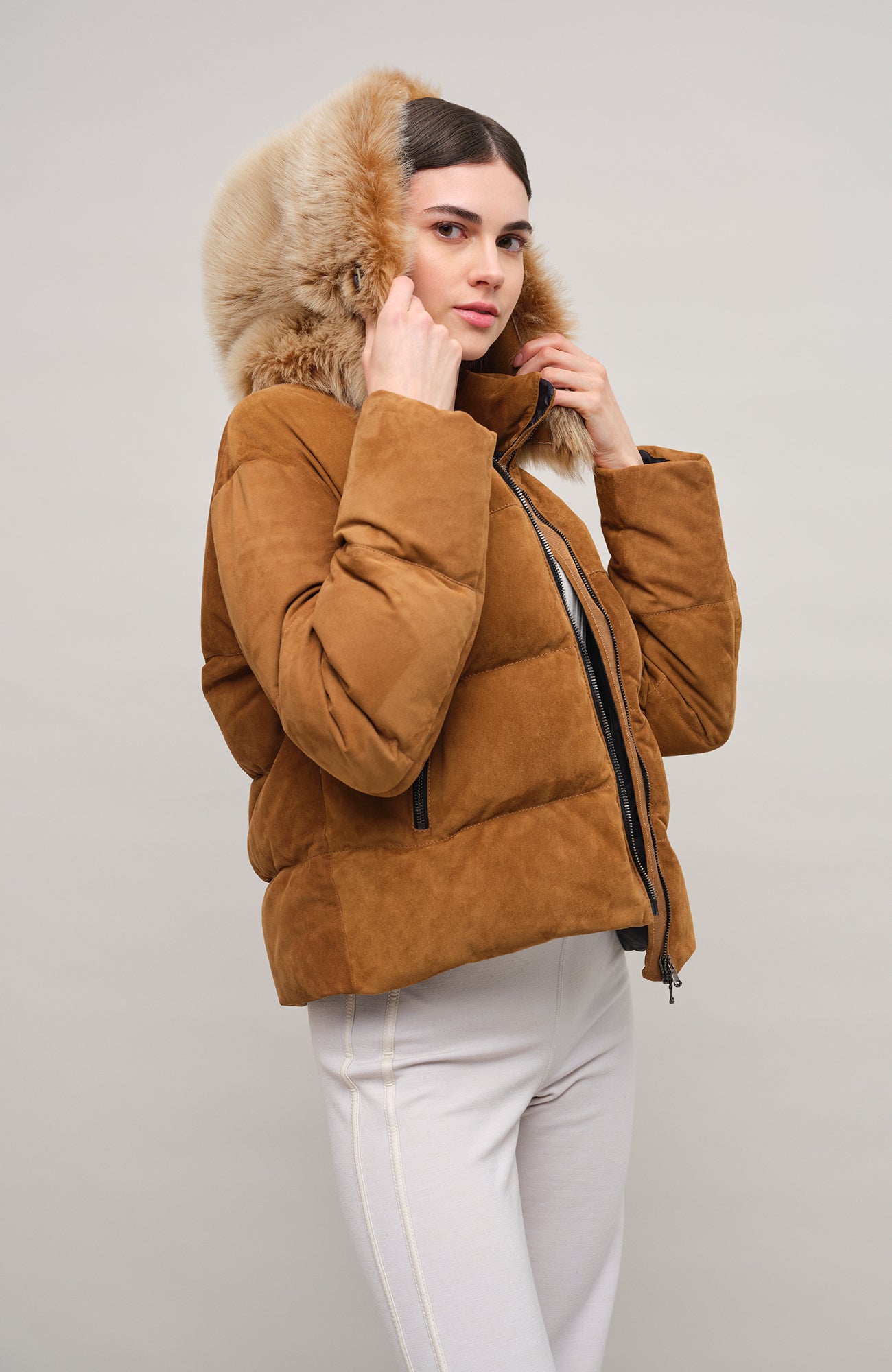 Erleben Sie luxuriöse Eleganz mit Fokina Lambskin, einem edlen Lammfell aus Spanien, das in Italien mit höchster Sorgfalt verarbeitet wird. Das lange, locker fallende Haar verleiht dem Fell Volumen und eine elegante Optik. Der besondere Brisa-Effekt sorgt für eine natürliche, leicht zerzauste Struktur, als wäre das Fell sanft von einer Brise bewegt worden. So entsteht ein luftiger, langlebiger Look mit luxuriösem Charakter. Vielseitig einsetzbar, verleiht die Lammfell-Kapuze jedem Outfit eine exklusive, natürliche Note – ob als edler Akzent an Jacken oder als funktionales Highlight an Capes und Mänteln.