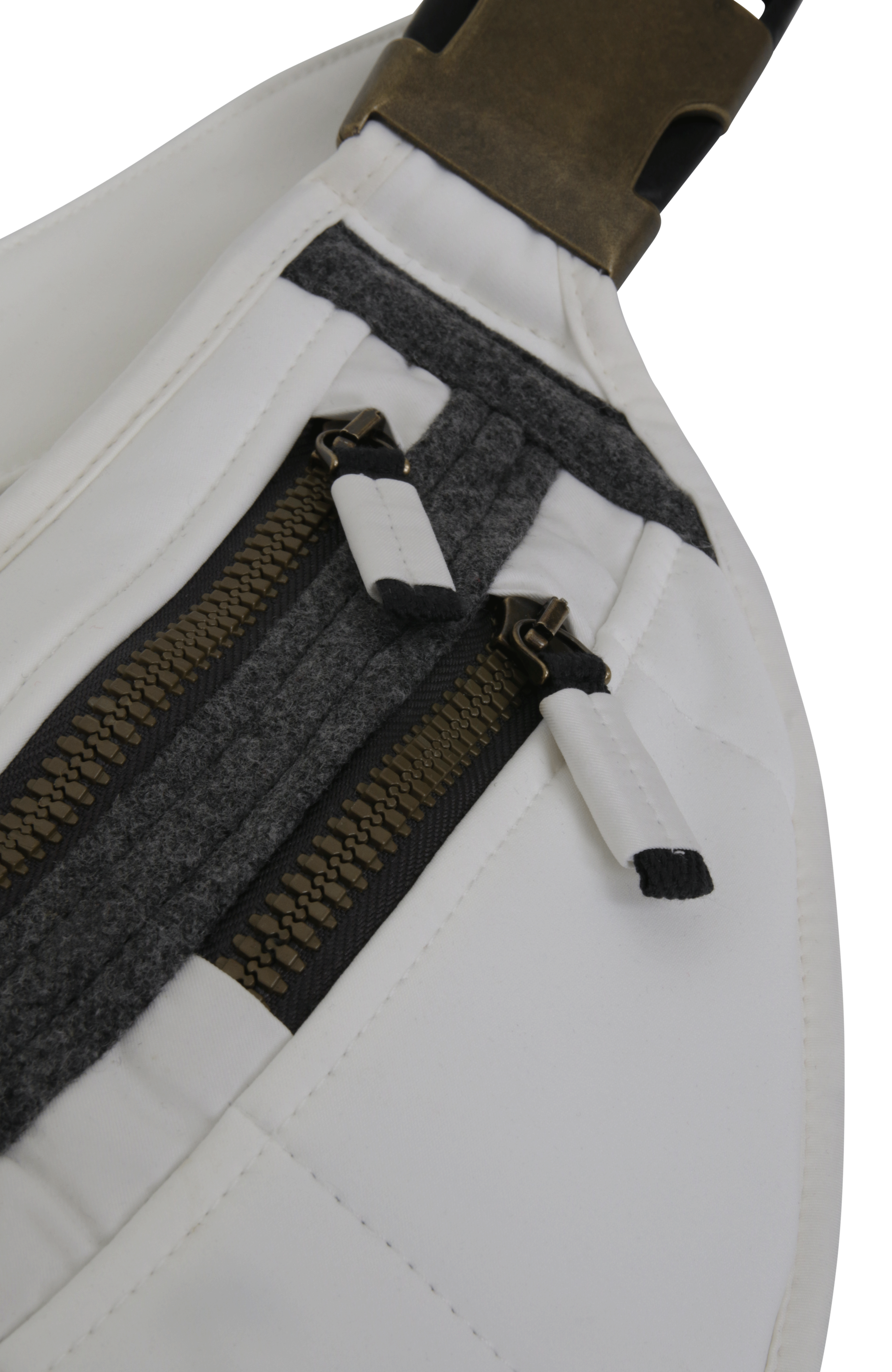 Die aktuell wieder besonders angesagte, trendige Hüfttasche wurde aus Schöller Softshell gefertigt. Einem robustem, mehrlagigem Stoff, der sehr elastisch ist, atmungsaktiv, wasserabweisend und schmutzabweisend. Das Hauptfach bietet einen großen Stauraum für beispielswiese Handy, Geld und Schlüssel. In den beiden Ziptaschen können weitere Kleinigkeiten aufbewahrt werden. Alle drei Fächer bestehen aus Performance Ski-Material, einem sehr dehnbaren, wasserabweisendem und atmungsaktiven Stoff. Die Steckschließe und die Lodendetails werten den Look der Tasche nochmals auf. Die praktische Hüfttasche ist besonders leicht und lässt sich deshalb körpernah tragen, klassisch um die Hüfte oder auch quer über den Rücken.