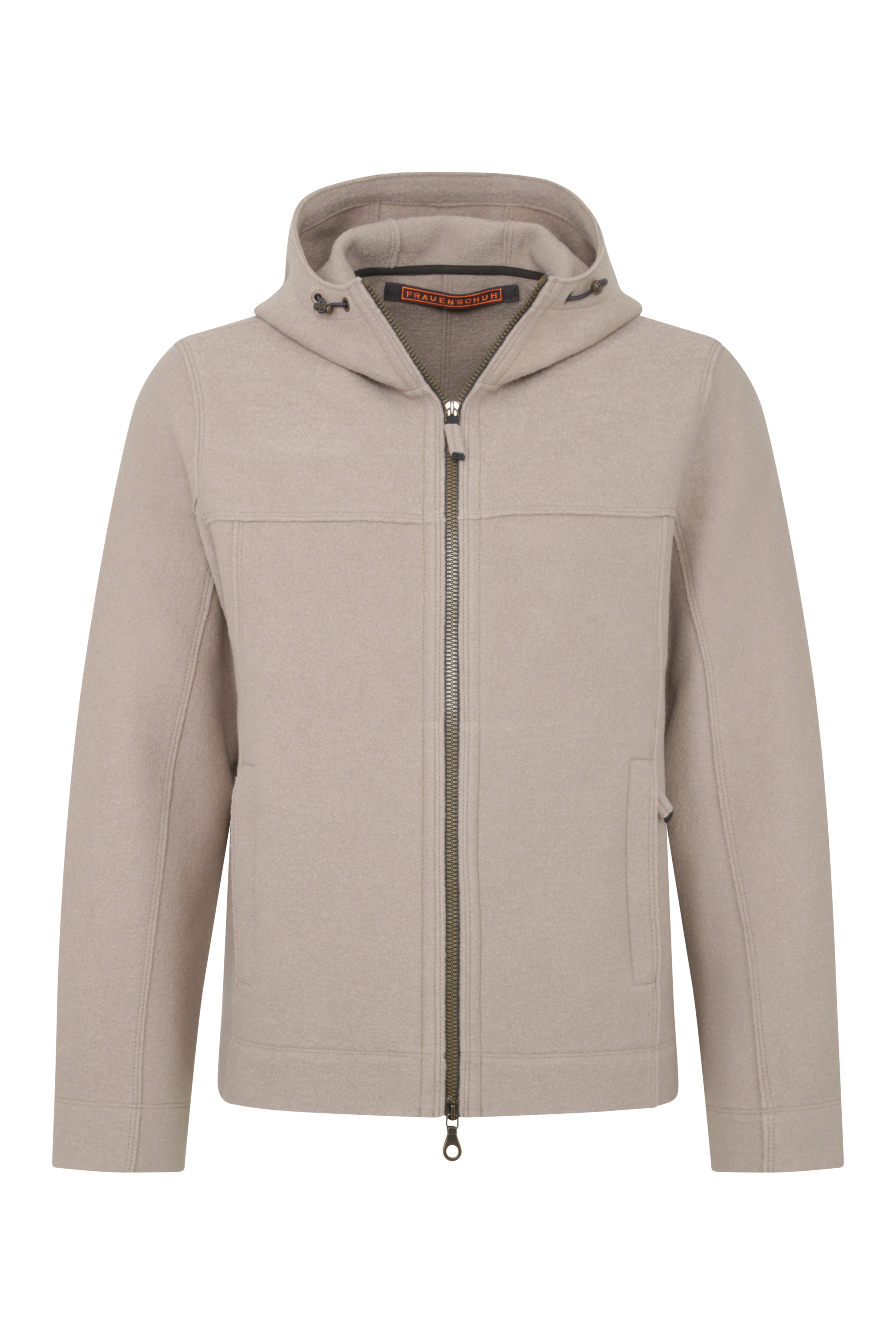 Cooked Wool Merino – eine robuste Walktechnik aus der alpinen Tradition, bei der Schafwolle dicht verfilzt wird, um höchste Strapazierfähigkeit und Wetterfestigkeit zu garantieren. Ein reines, mulesingfreies Naturprodukt, gefertigt in den Tiroler Bergen. Ein wärmendes, vielseitiges Material, das auch bei widrigen Wetterbedingungen zuverlässig schützt.