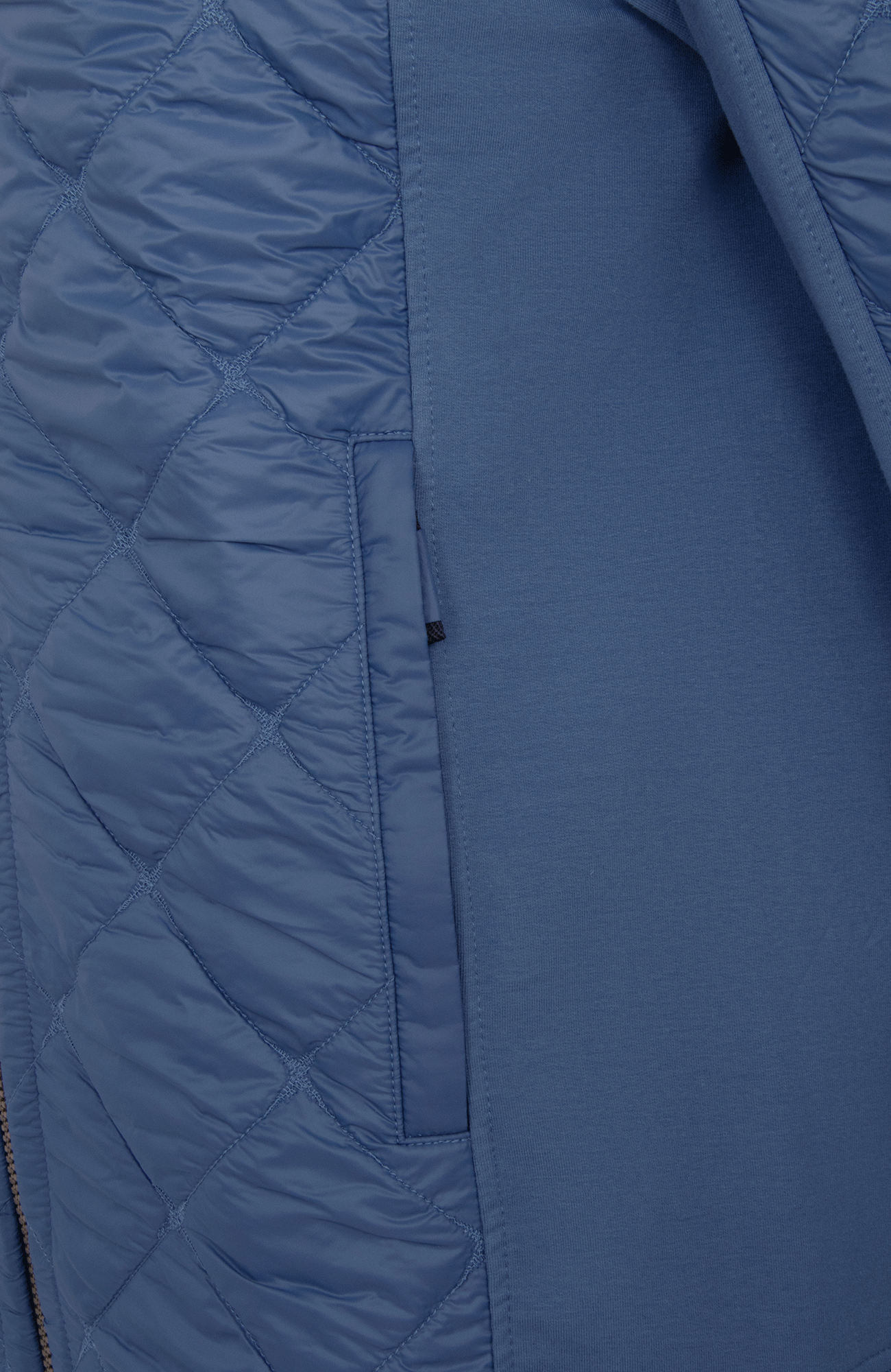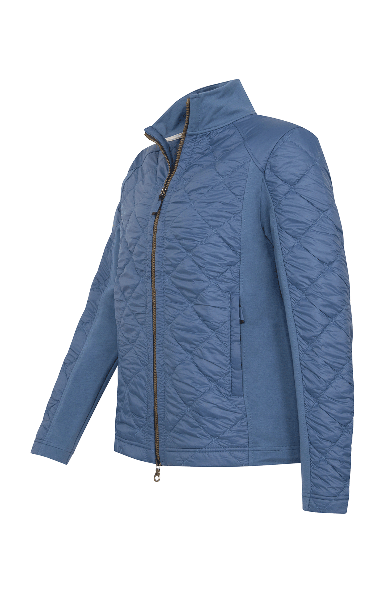 Diese kurze, figurbetonte Freizeitjacke verbindet Stil und Komfort auf perfekte Weise. Die klassischen Quiltdetails und die Rauten-Steppung verleihen der Jacke einen eleganten Look, während der lässige Stehkragen und die Ärmel- sowie Saumabschlüsse in Rippoptik für eine moderne Silhouette sorgen. Die Seitenteile aus weichem Italian Felpa passen sich sanft dem Körper an und erhöhen den Tragekomfort. Praktische Details wie zwei seitliche Reißverschlusstaschen und ein Zwei-Wege-Zipper machen die Jacke funktional und vielseitig kombinierbar – ideal für Freizeit und City-Looks.