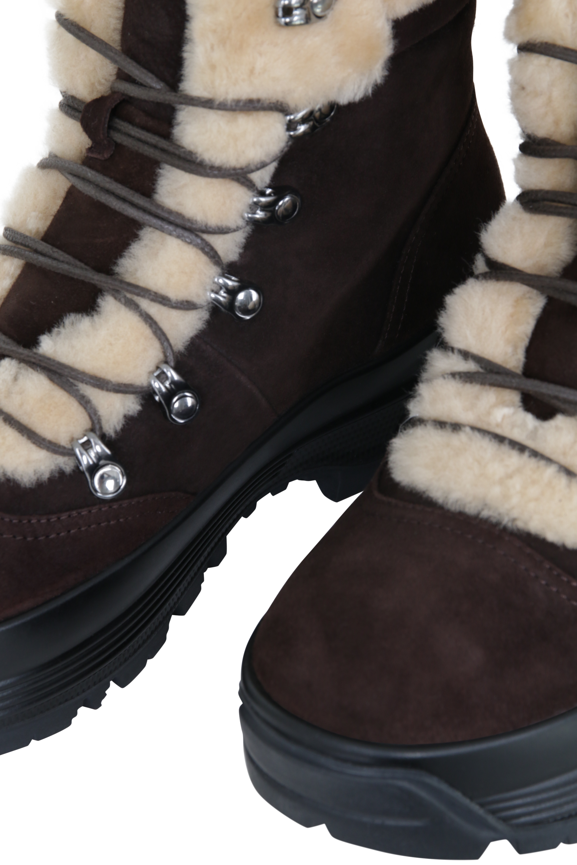 Zur Pflege den Schuh regelmäßig mit einer geeigneten Imprägnierung behandeln und das Lammfell innen sauber und trocken halten, um Wärme und Langlebigkeit zu erhalten.