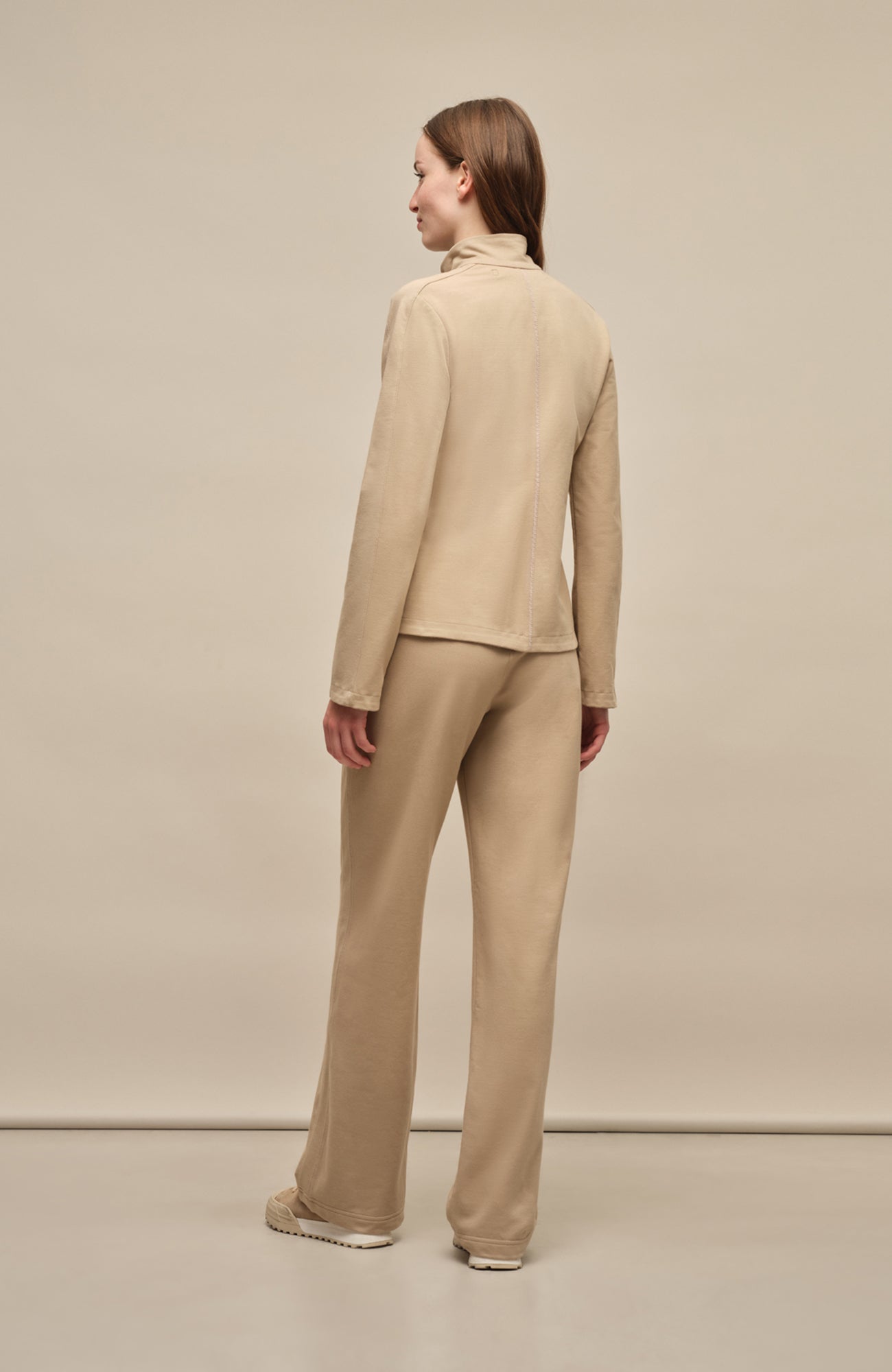 This high-quality felpa material from a traditional Italian mill combines feminine elegance with technical sophistication. The dense cotton knit retains its shape thanks to the finest yarns and a touch of elastane, offering lasting support for natural freedom of movement – without compromising on comfort.