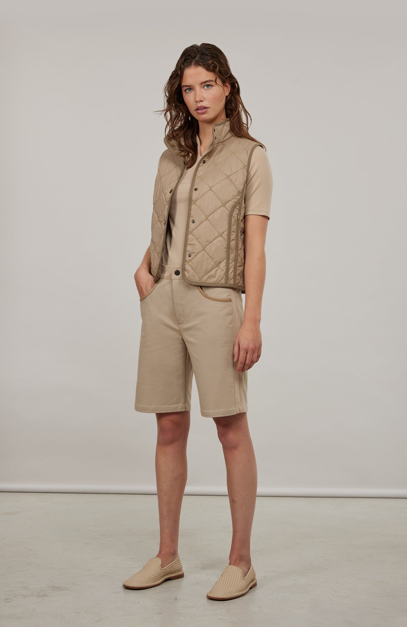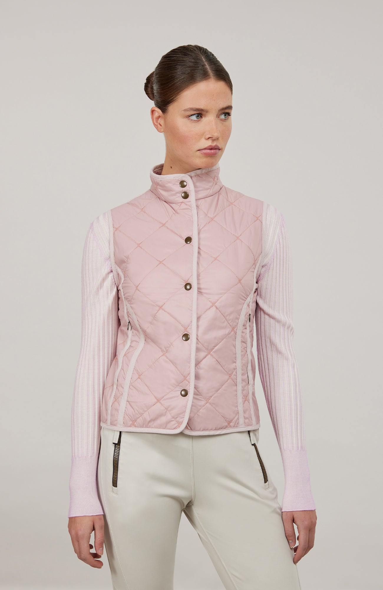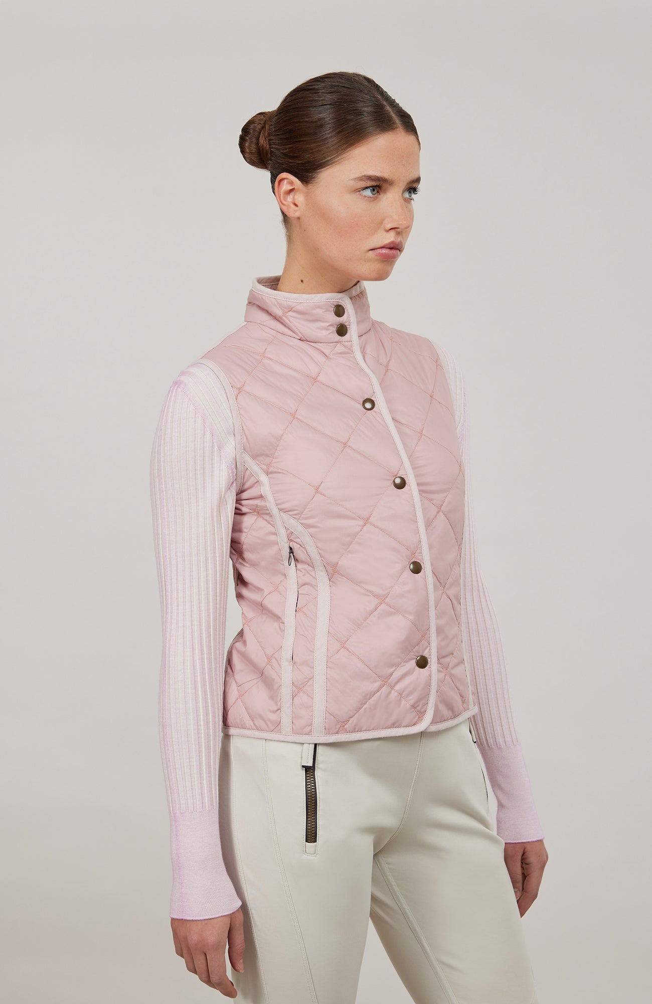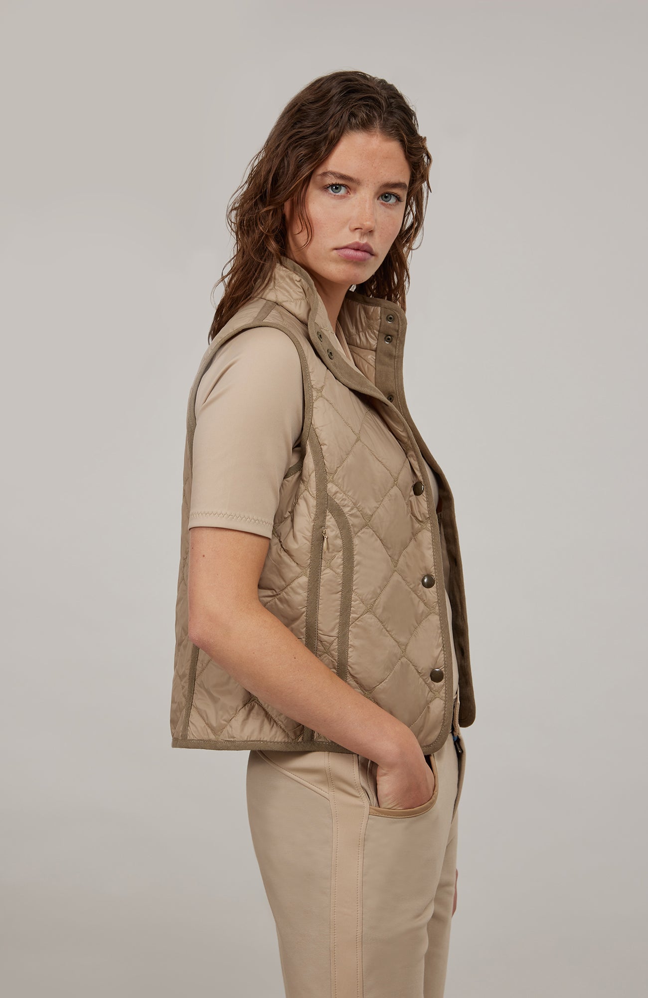 In addition to its functionality, such as its warming, water- and dirt-repellent properties, the sleeveless vest also impresses with its appearance. The finest Italian nylon is quilted with a classic diamond pattern. It can also be folded up very small so that it can be easily stowed in bags or backpacks.