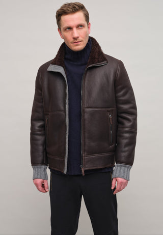 Napped lambskin jacket with distinctive stitching and soft ribbed cuffs – lightweight and warm. Alvin