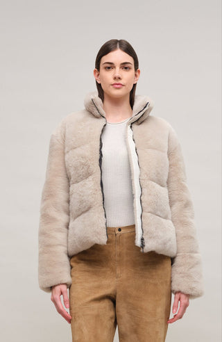 Alpine lambskin jacket – short, warm, and perfect for fall days.