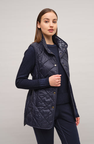 Our longer Kim quilted vest goes perfectly with the Daphne pants and the Palomina shirt.