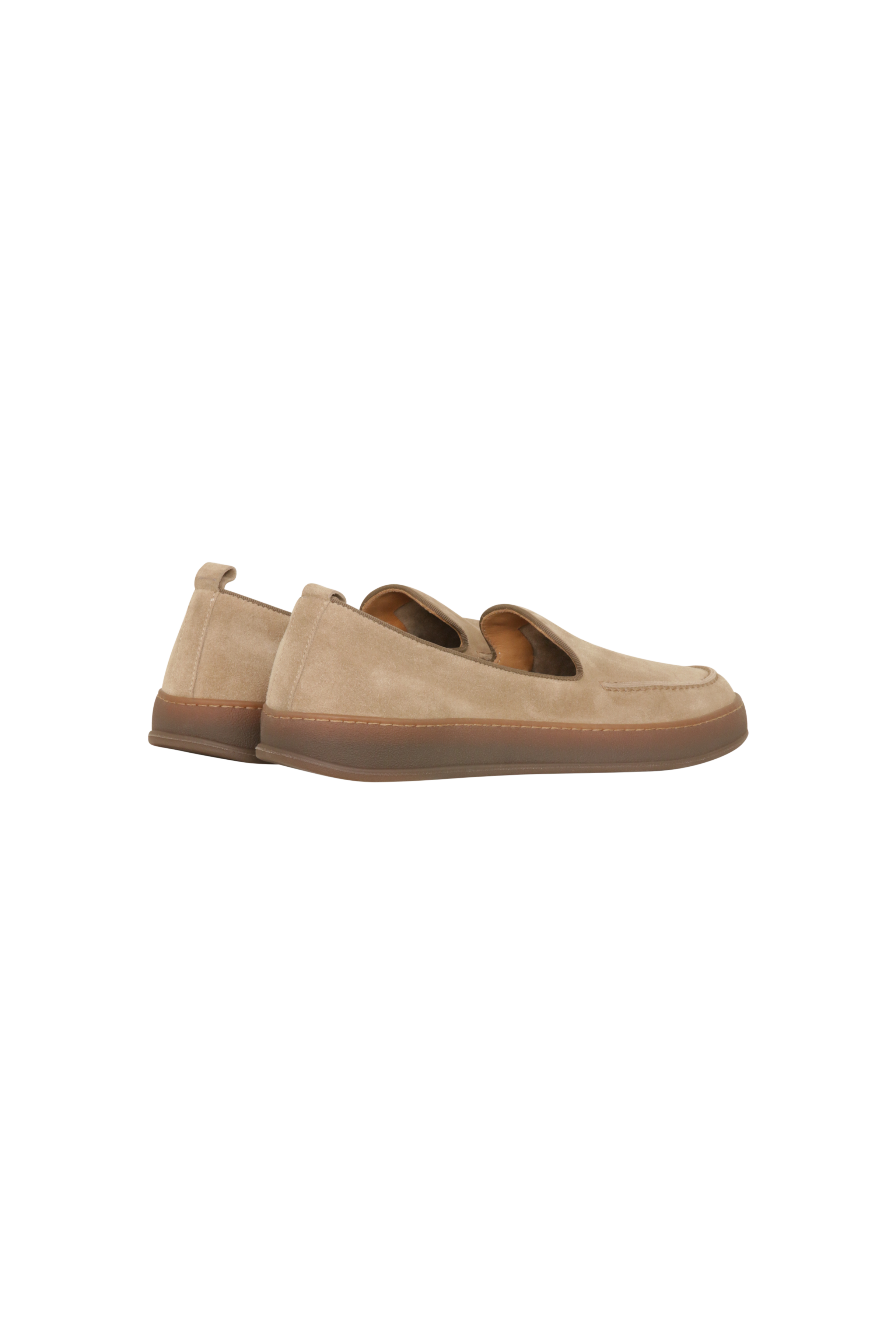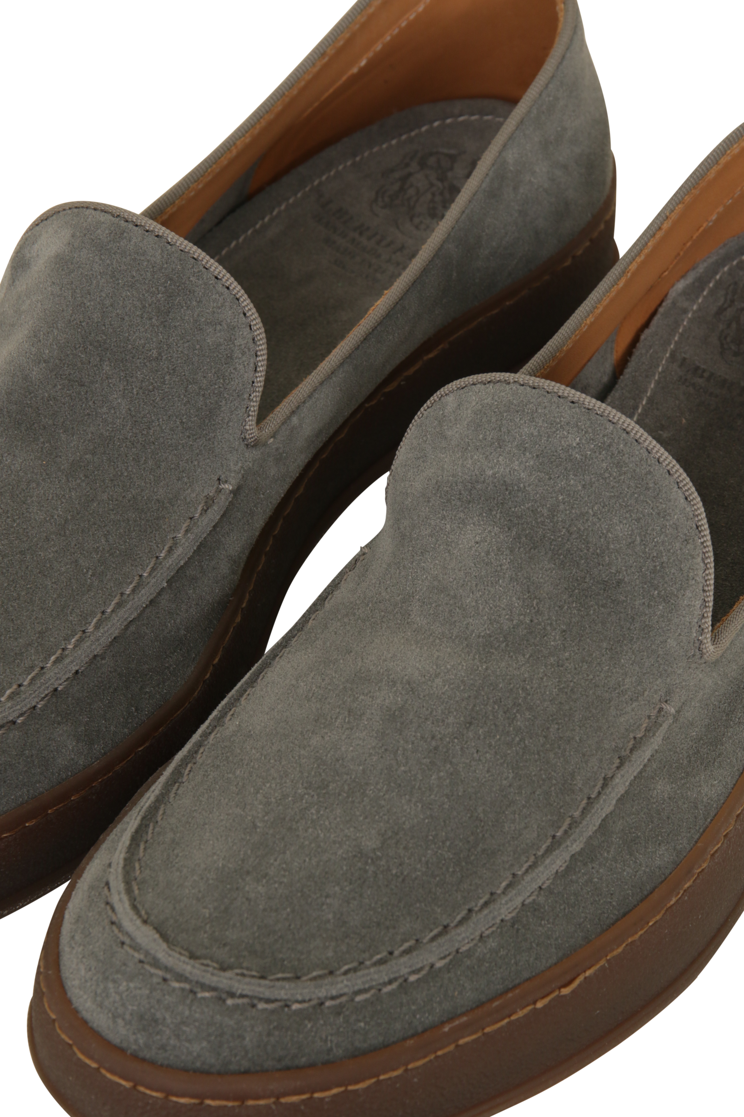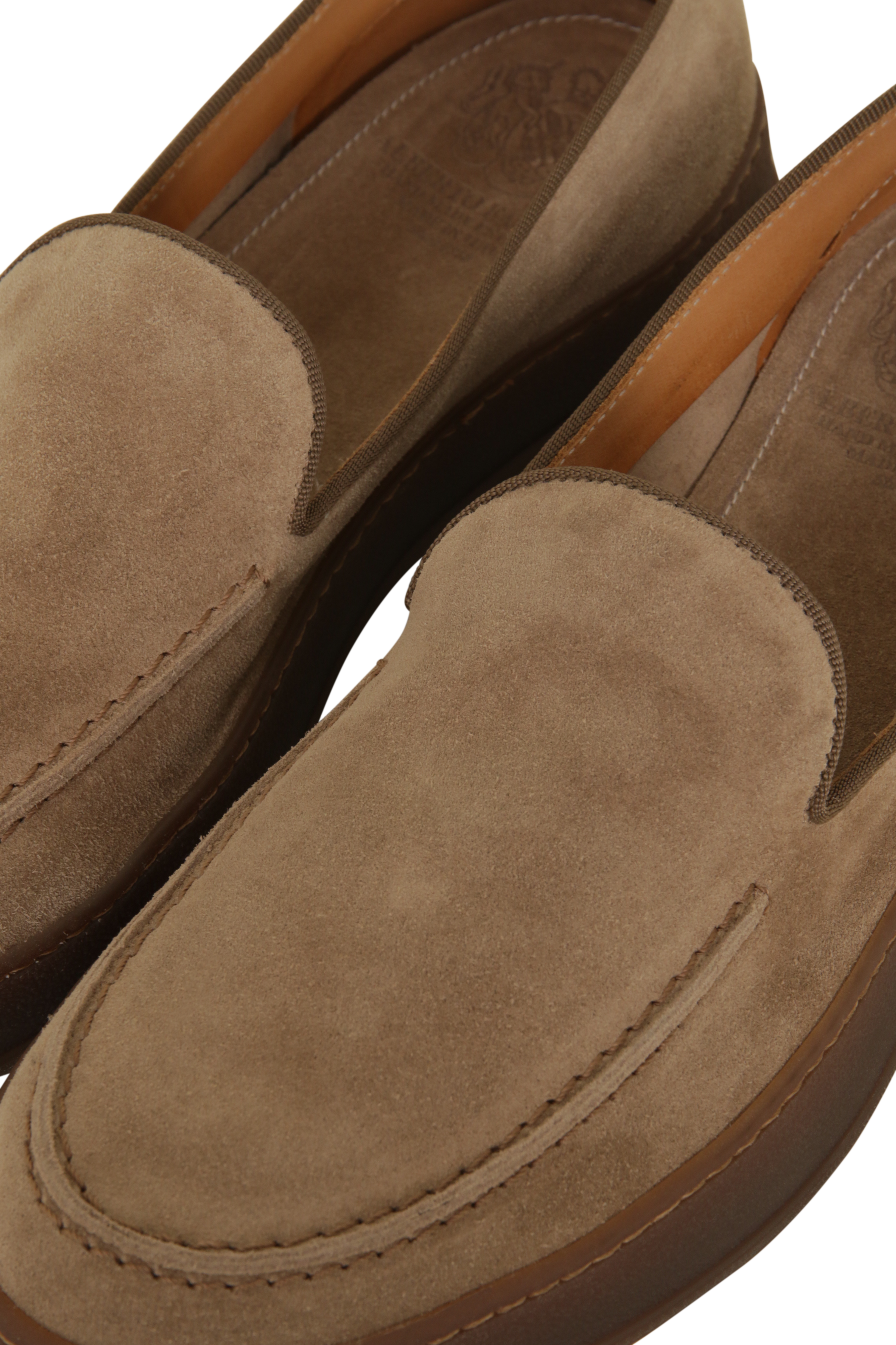 Diese eleganten Loafer aus weichem Premium-Kalbsveloursleder („reversed calfskin“) vereinen italienische Handwerkskunst mit modernem Design. Die kontrastreiche Oberseite wird durch dekorative Ziernähte stilvoll akzentuiert und verleiht dem Schuh eine feine, handwerkliche Note.