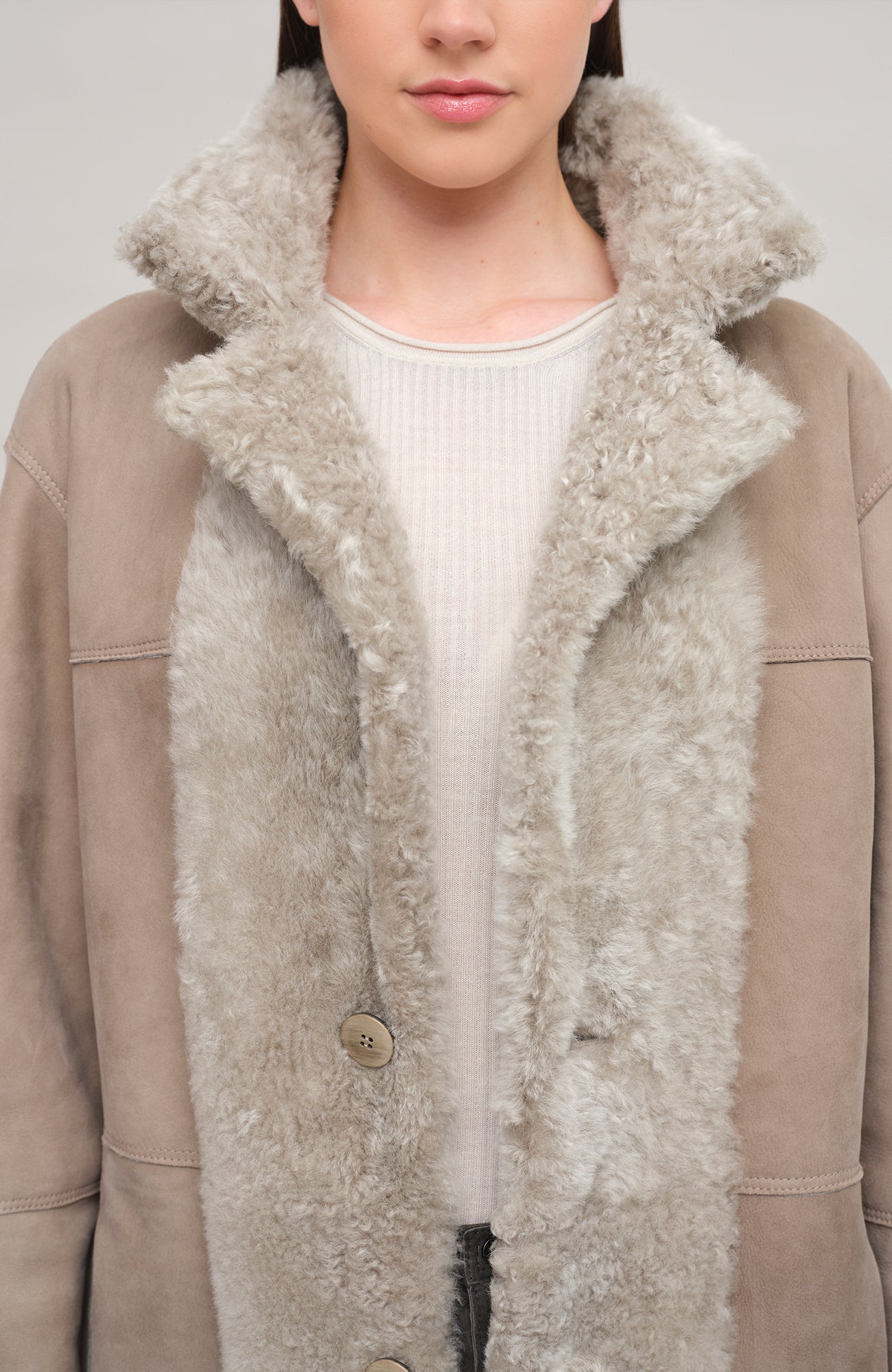 All lambskin pieces from Frauenschuh are produced using a special ecological tanning process – completely free of chemicals. Therefore, they are not suitable for cleaning with conventional methods.