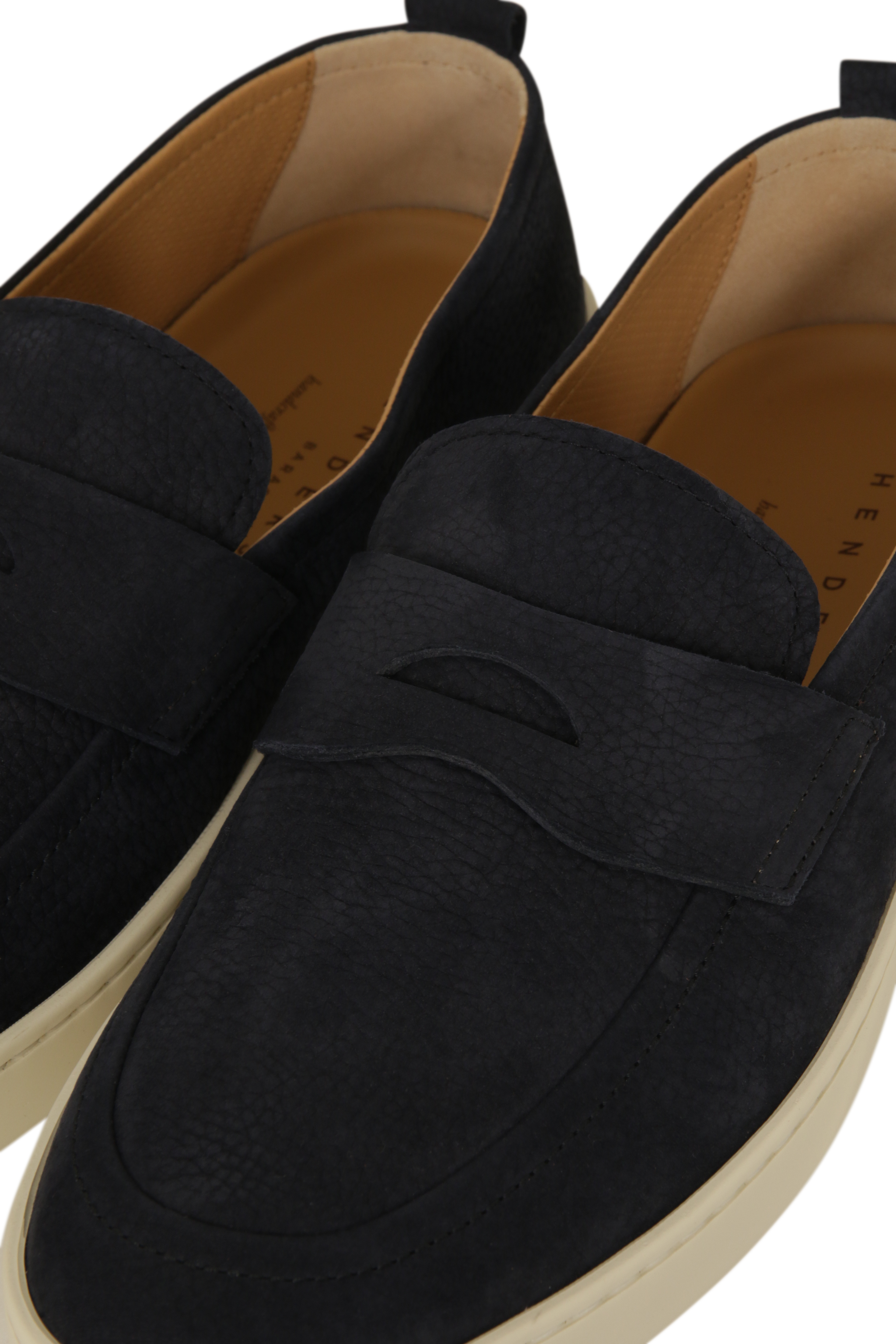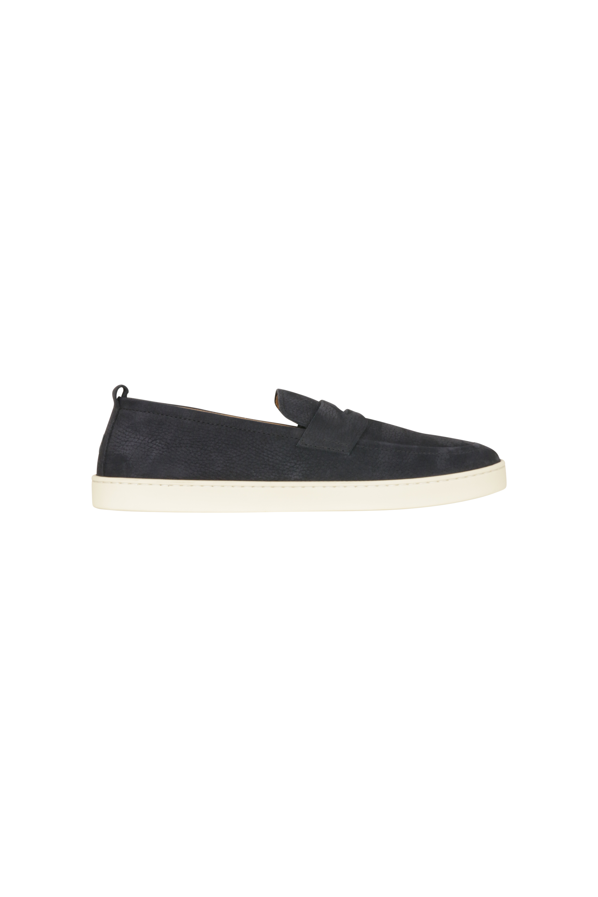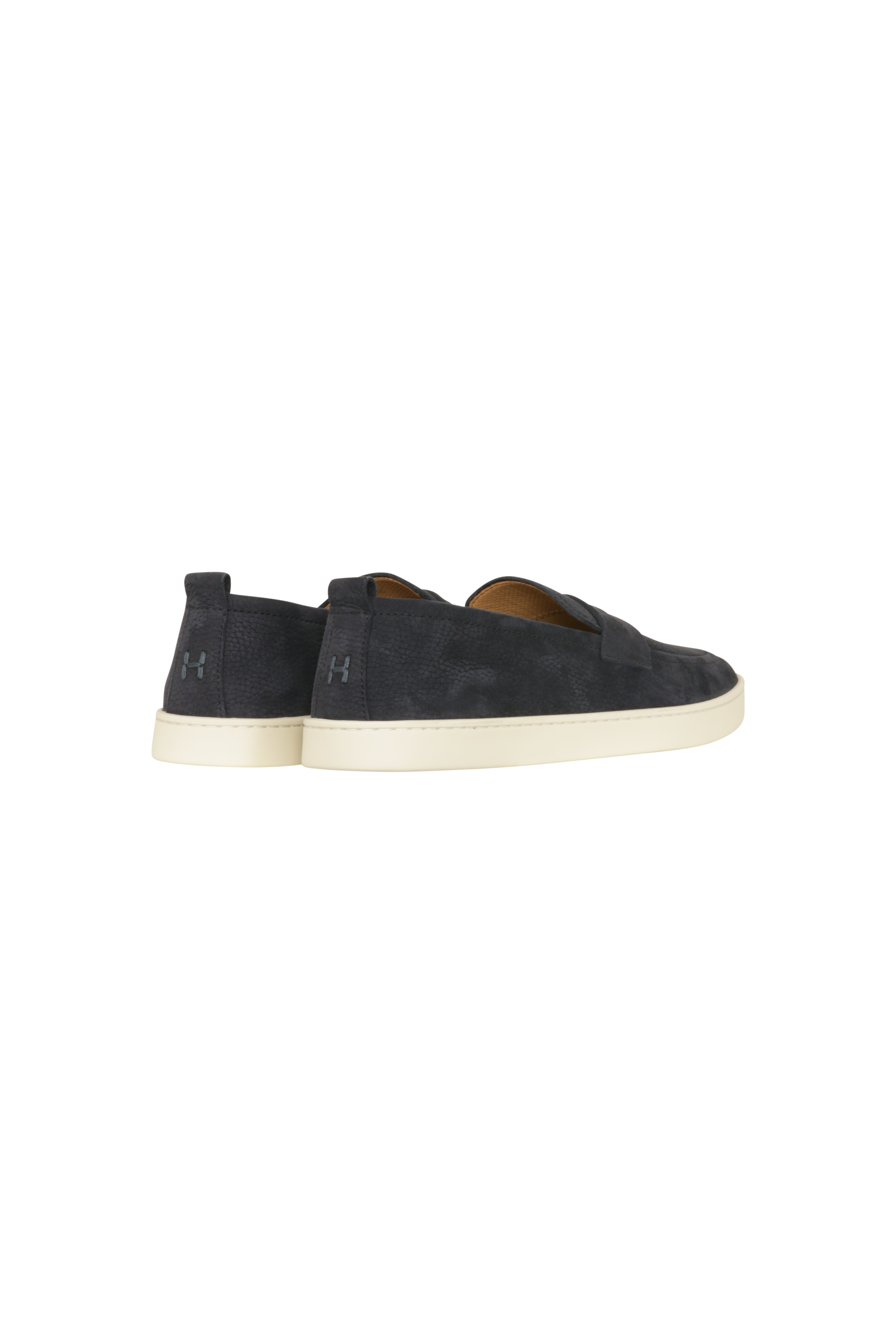 - Hochwertiger Slipper aus dunkelblauem Nubuk-Kalbsleder