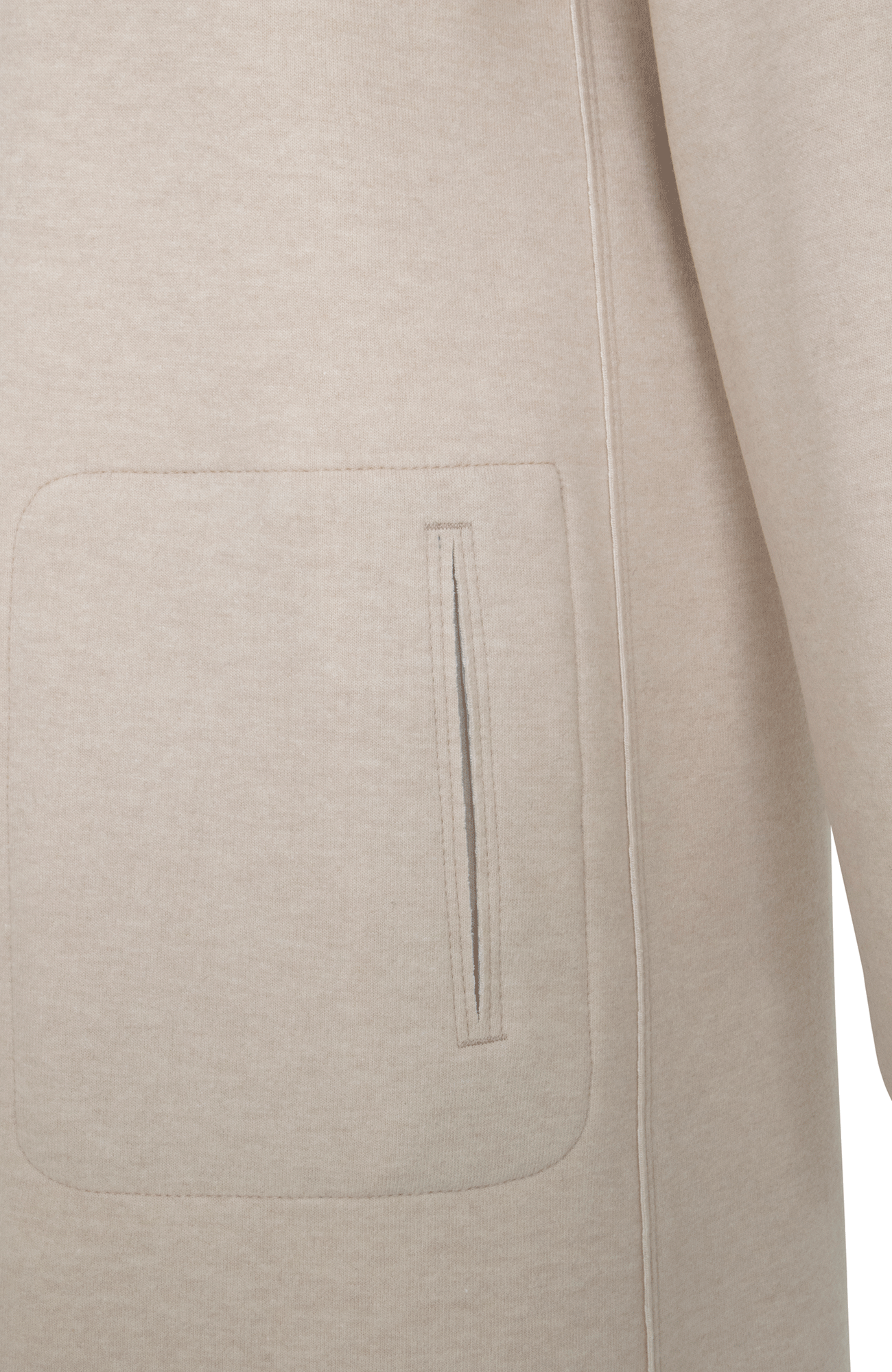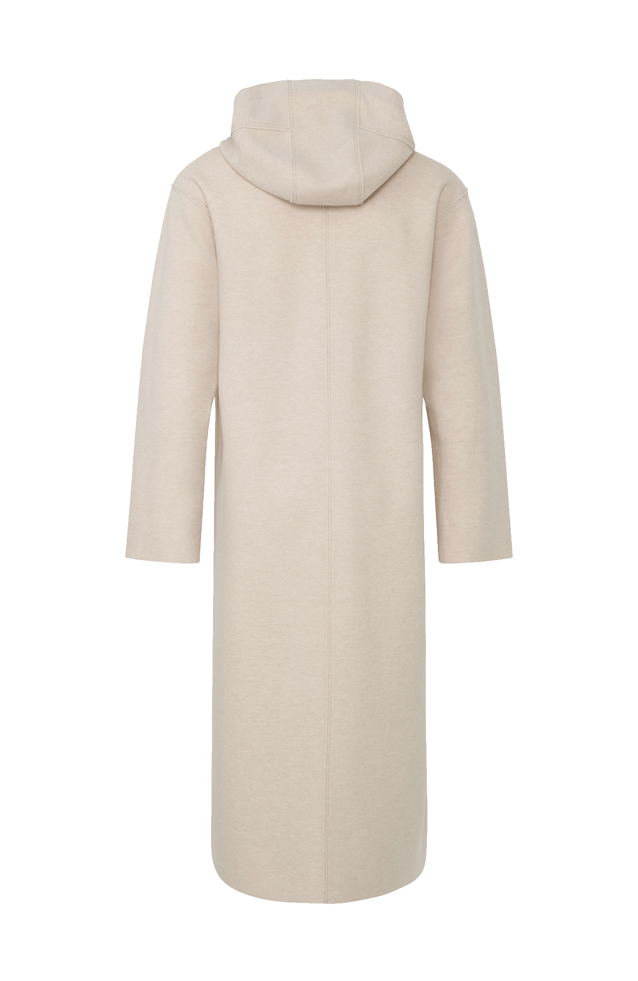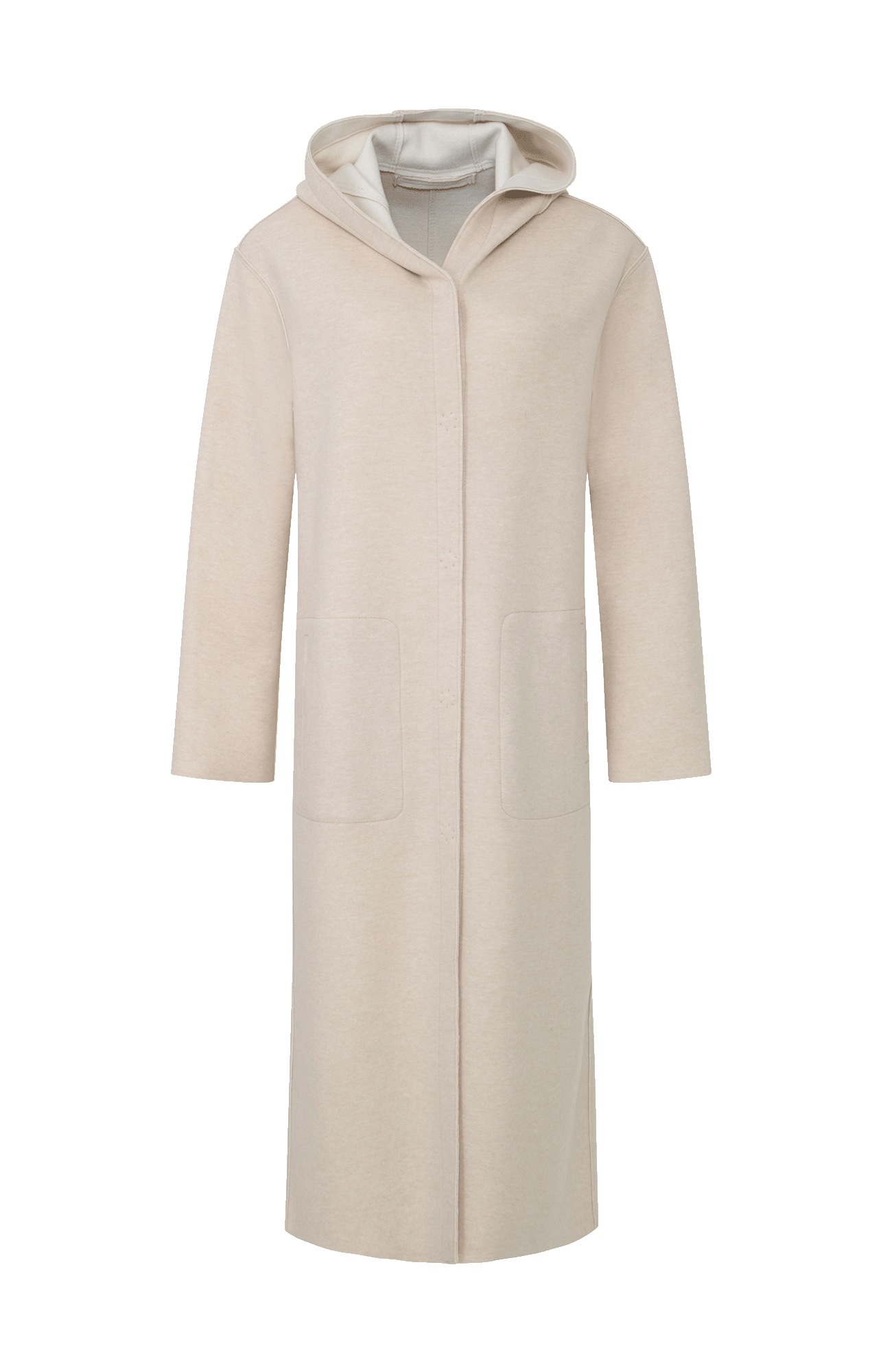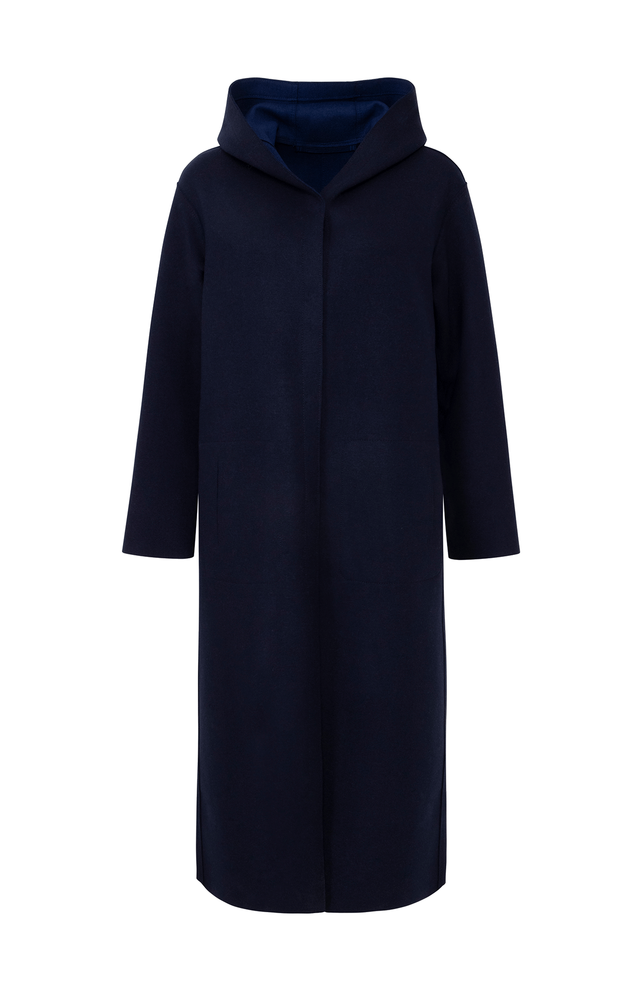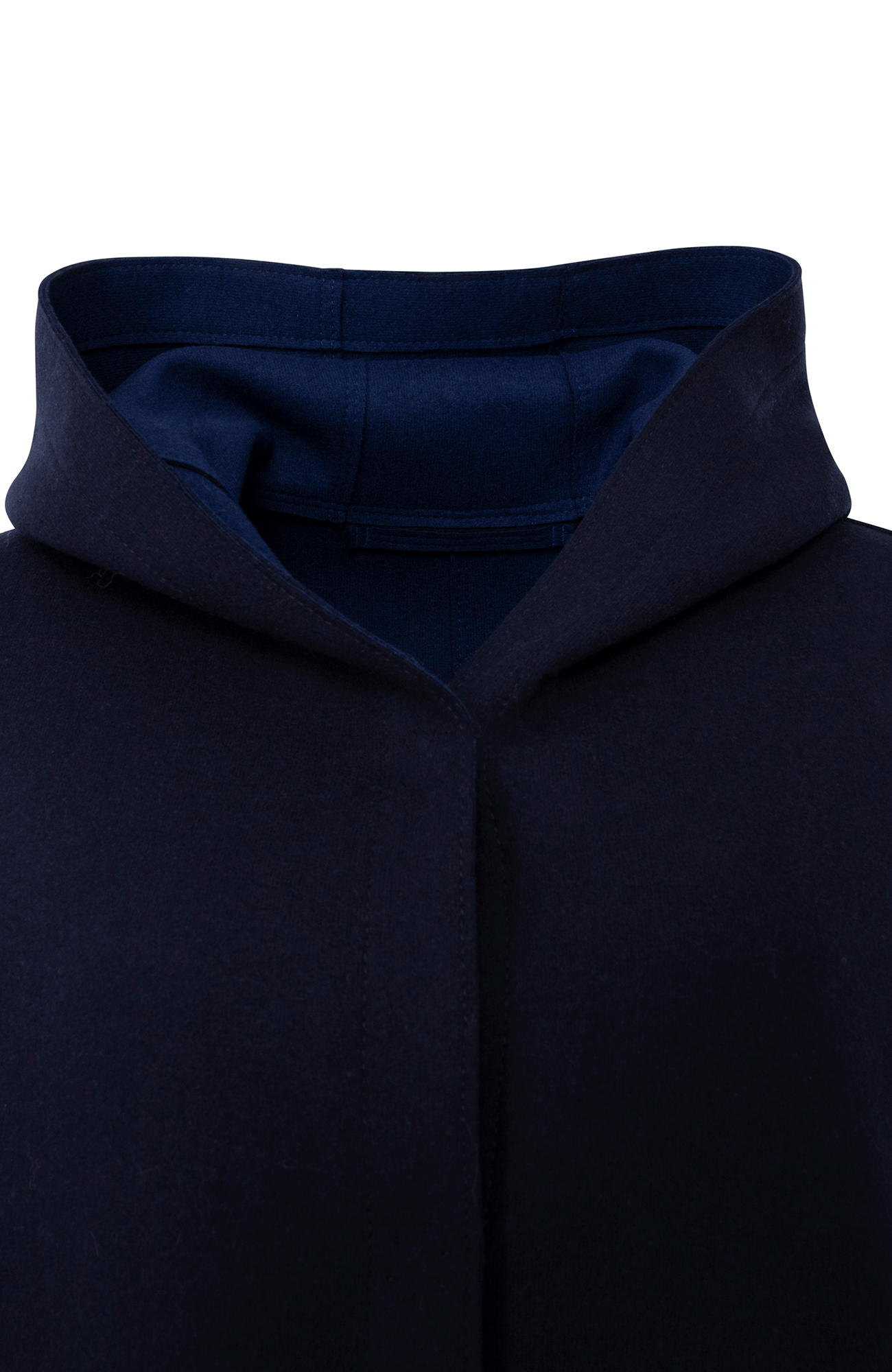 Soft, warm and breathable, the wool coat made of Wool Double hugs the body. Thanks to the double processing, the coat can be worn on both sides, creating two looks. The generous length of the coat is striking. The details are of high quality, for example the hand-sewn snap fasteners or the attached hood. The side pockets are sewn with a fine seam and turn into patch pockets on the other side of the coat.
