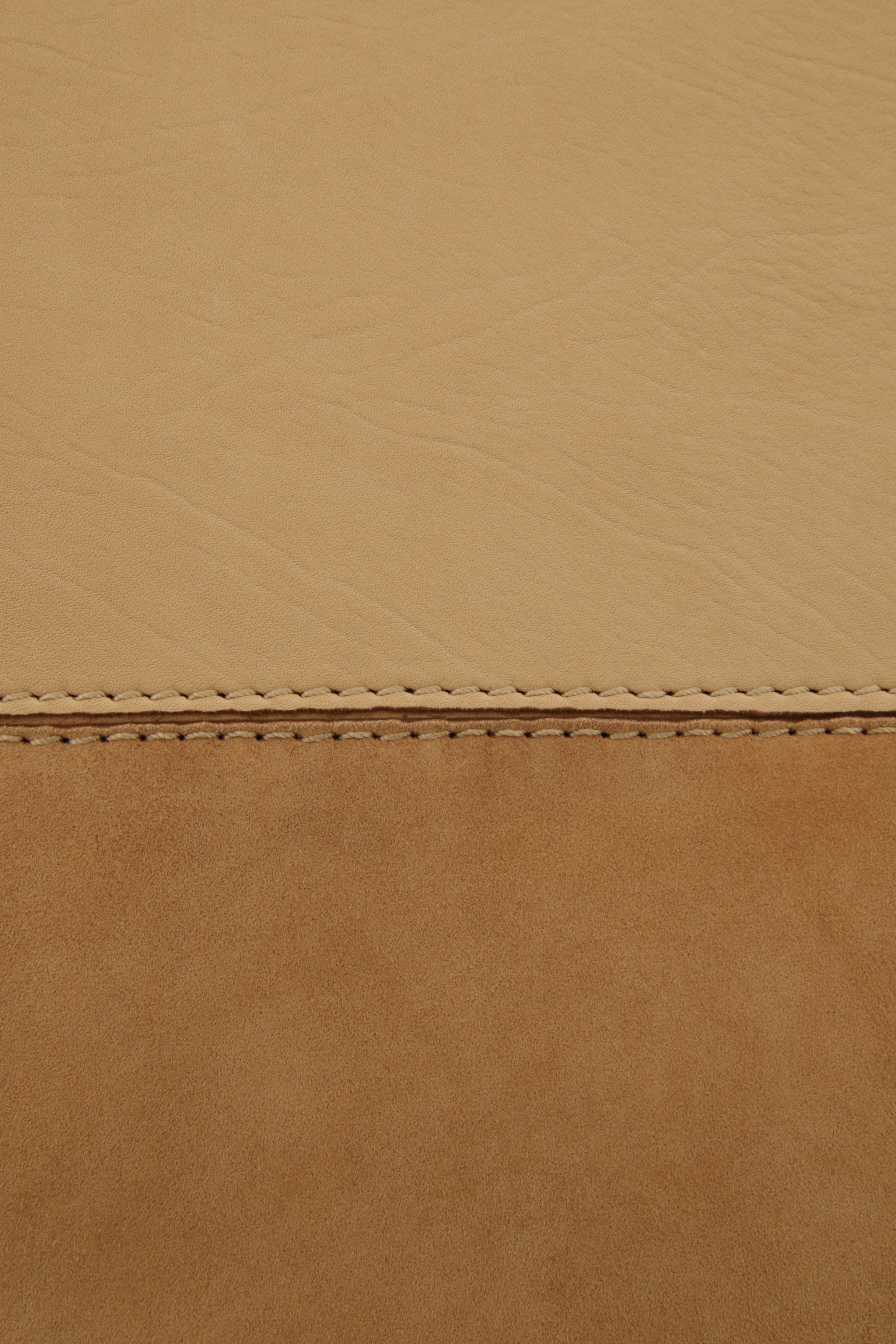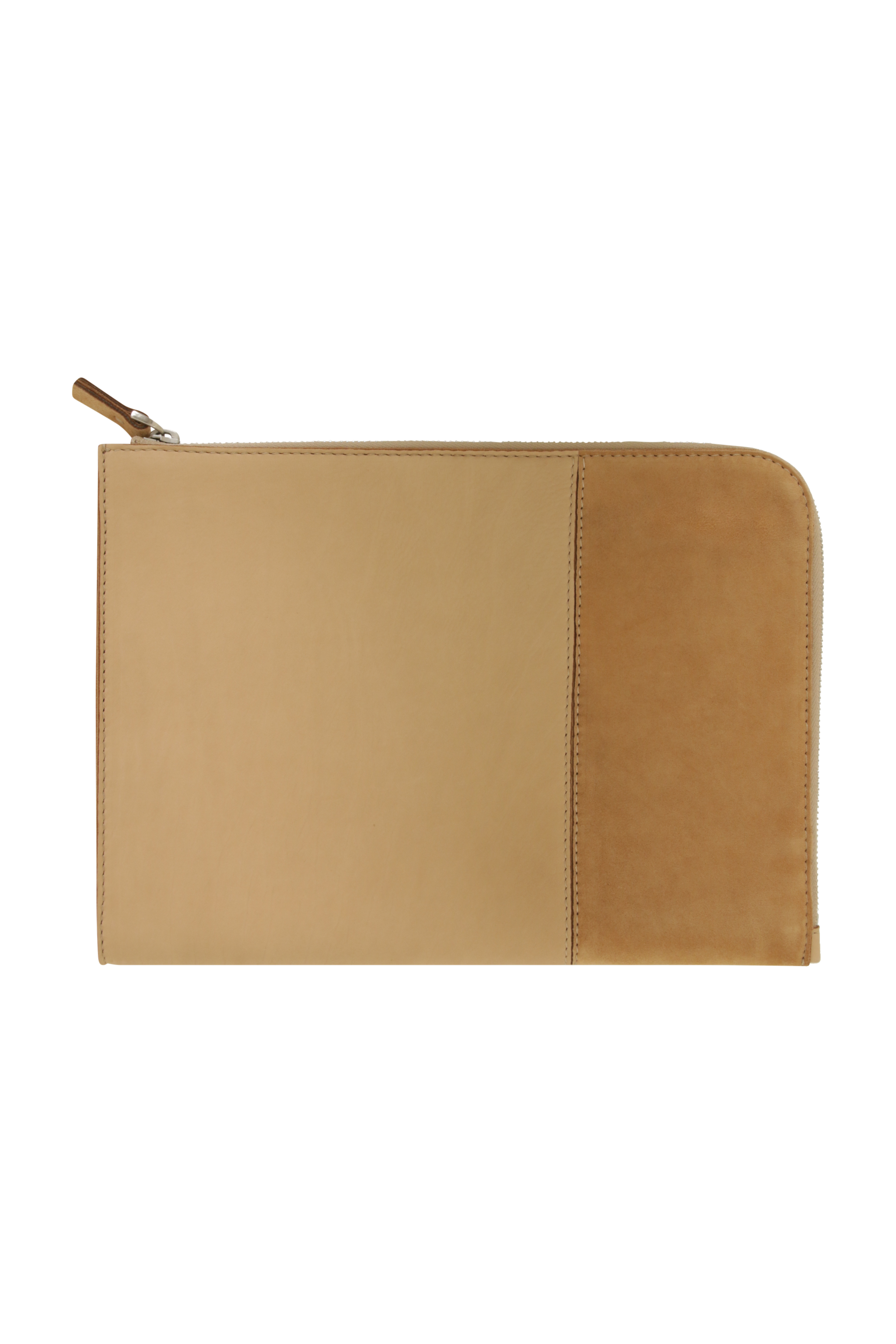 The organizer, crafted from high-quality baby-calf leather, combines functionality with elegant, timeless design. The exterior blends suede and smooth leather, while the interior features two spacious, double-sided leather pockets. The canvas lining ensures stability and durability, and a robust metal zipper provides secure closure and convenience.