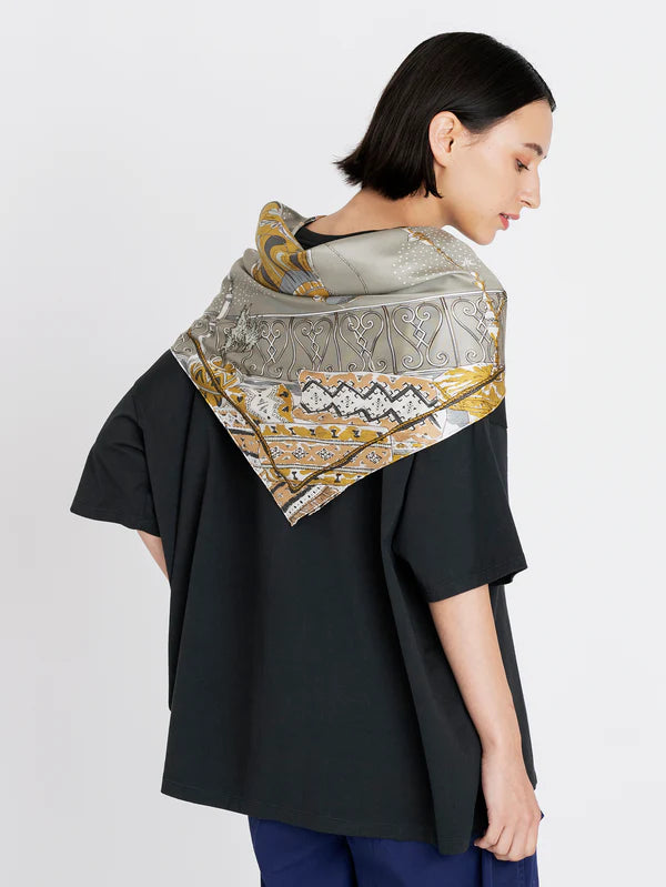 Jeder Schal wird von japanischen Kunsthandwerkern einzeln handbedruckt, die Kanten sorgfältig von Hand gerollt. Das Material aus 12 Momme Twill-Seide ist weder zu dünn noch zu dick, fühlt sich unglaublich glatt an und verstärkt durch seinen leuchtenden Glanz die Farbintensität. Ein stilvolles Accessoire, das jedem Outfit sofort eine elegante und farbenfrohe Note verleiht.