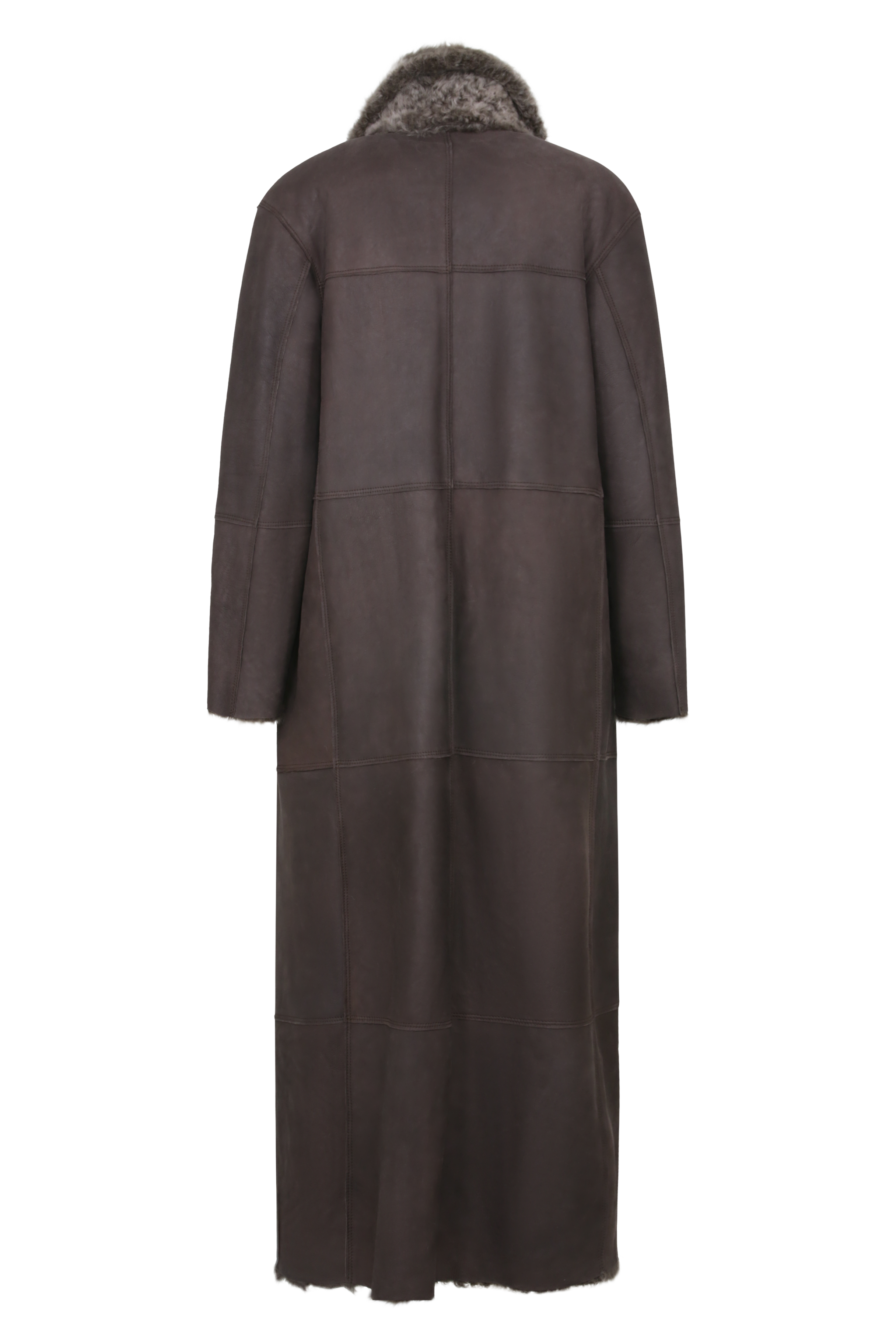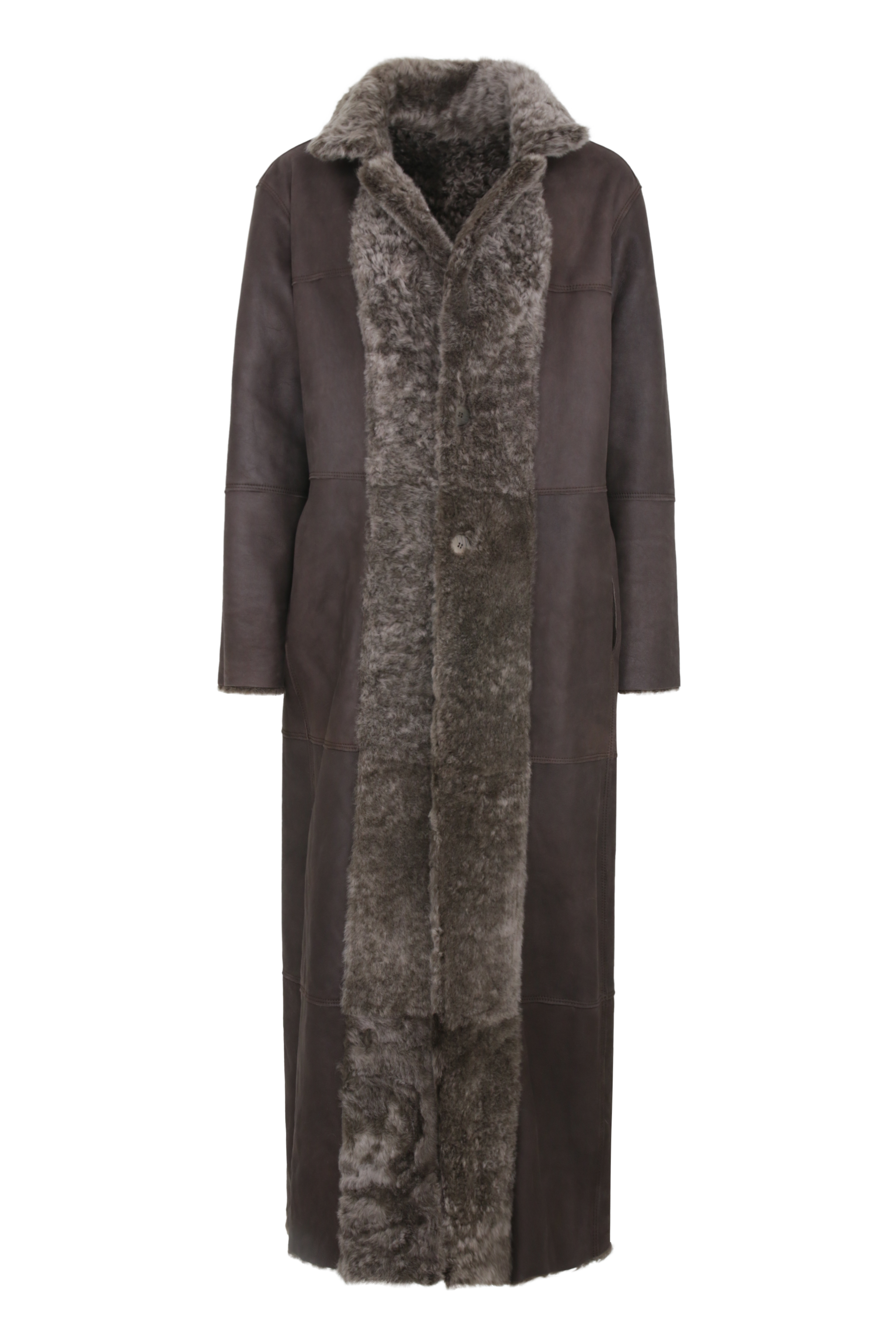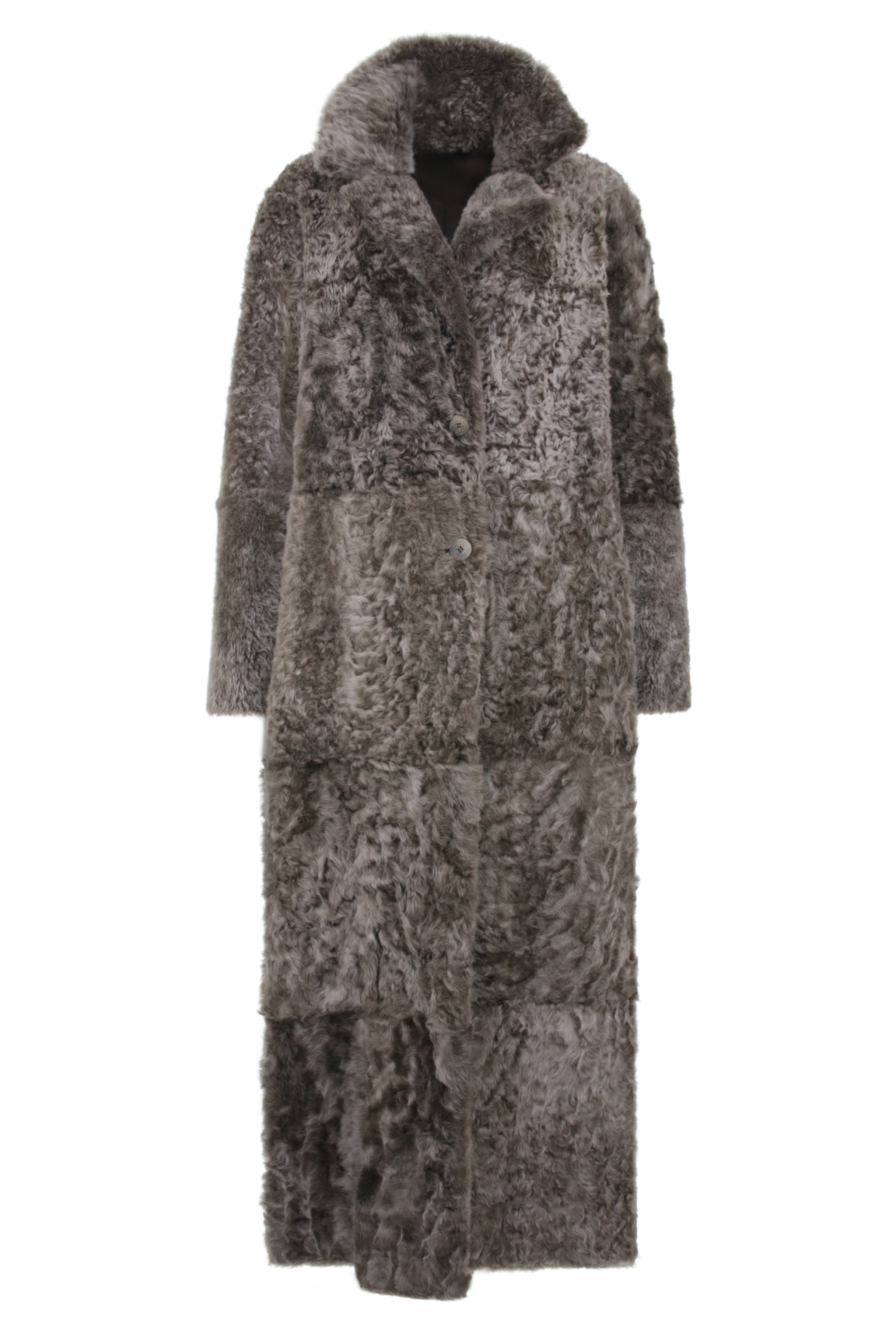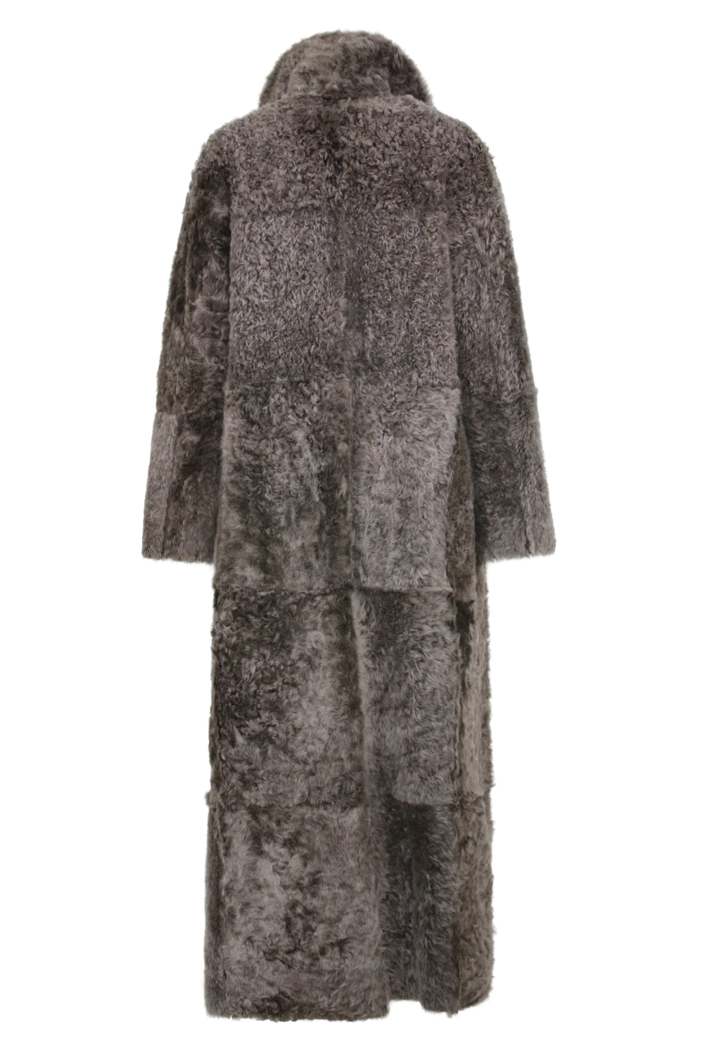 Sowohl die Glattlederseite wie auch die lockige Fellseite des Mantels haben ihren ganz besonderen Reiz. Und dank der offenkantigen Nahtverarbeitung entsteht eine spannende Patchwork-Optik. Der fast bodenlange Schnitt und der Reverskragen machen den Mantel zu einem zeitlosen It-Piece.
