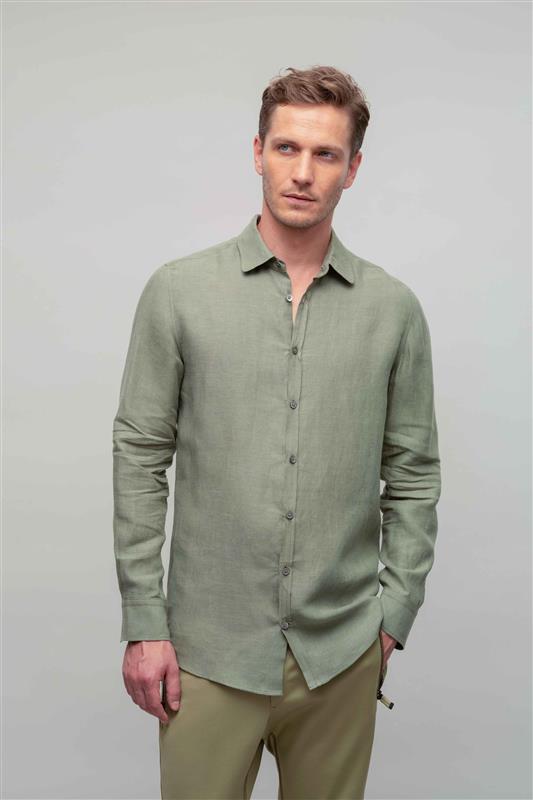 Kaum spürbar liegt dieses Hemd aus feinstem Leinen auf der Haut und überzeugt durch seine natürliche Leichtigkeit sowie seine atmungsaktive Qualität – ideal für warme Sommertage.