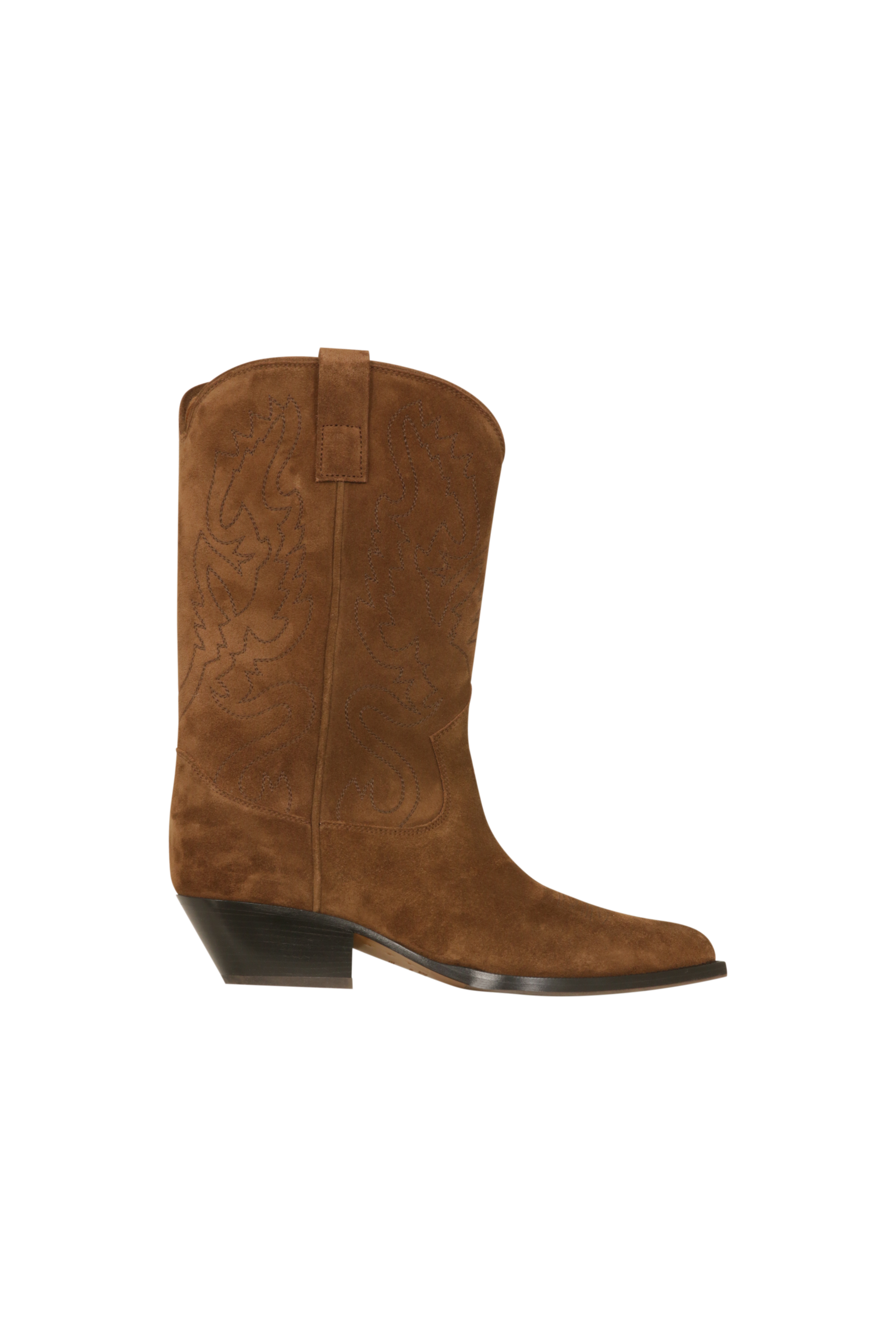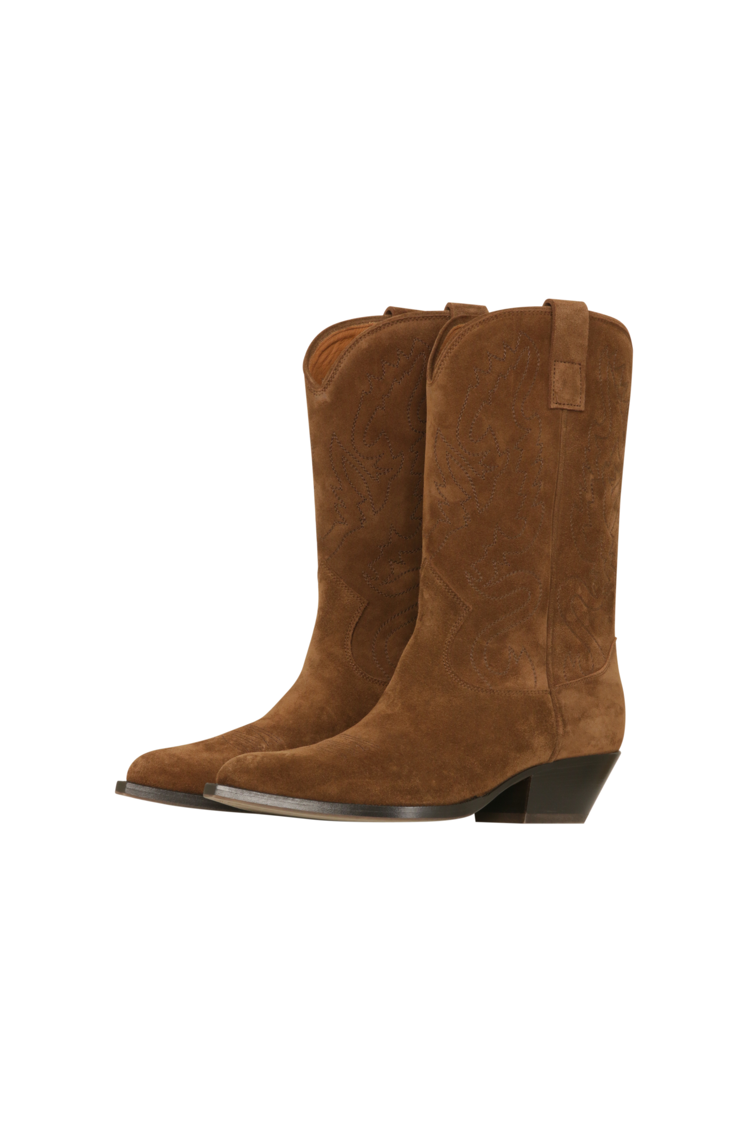 Die Cowboy Boots verbinden Western-Inspiration mit modernem Design. Gefertigt aus hochwertigem Zigarre-braunem Kalbsveloursleder bestechen sie durch tonale Stickereien auf Vorderblatt und Schaft, die dem Schuh eine elegante, handwerkliche Note verleihen.
