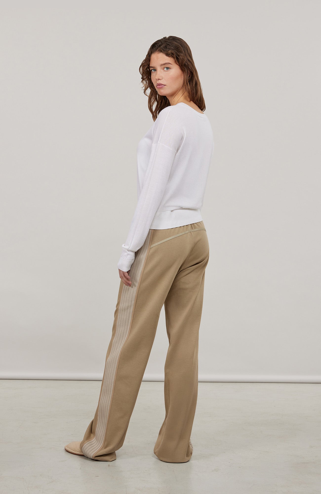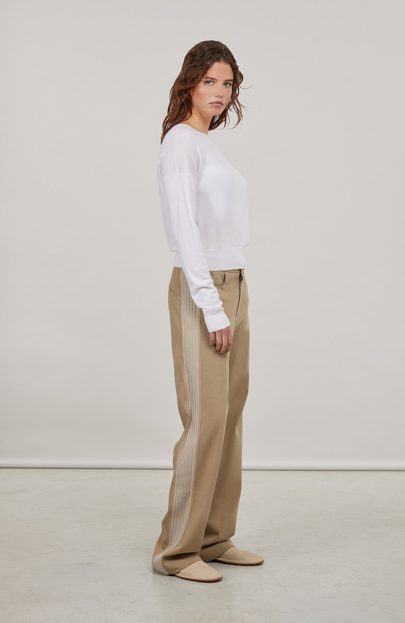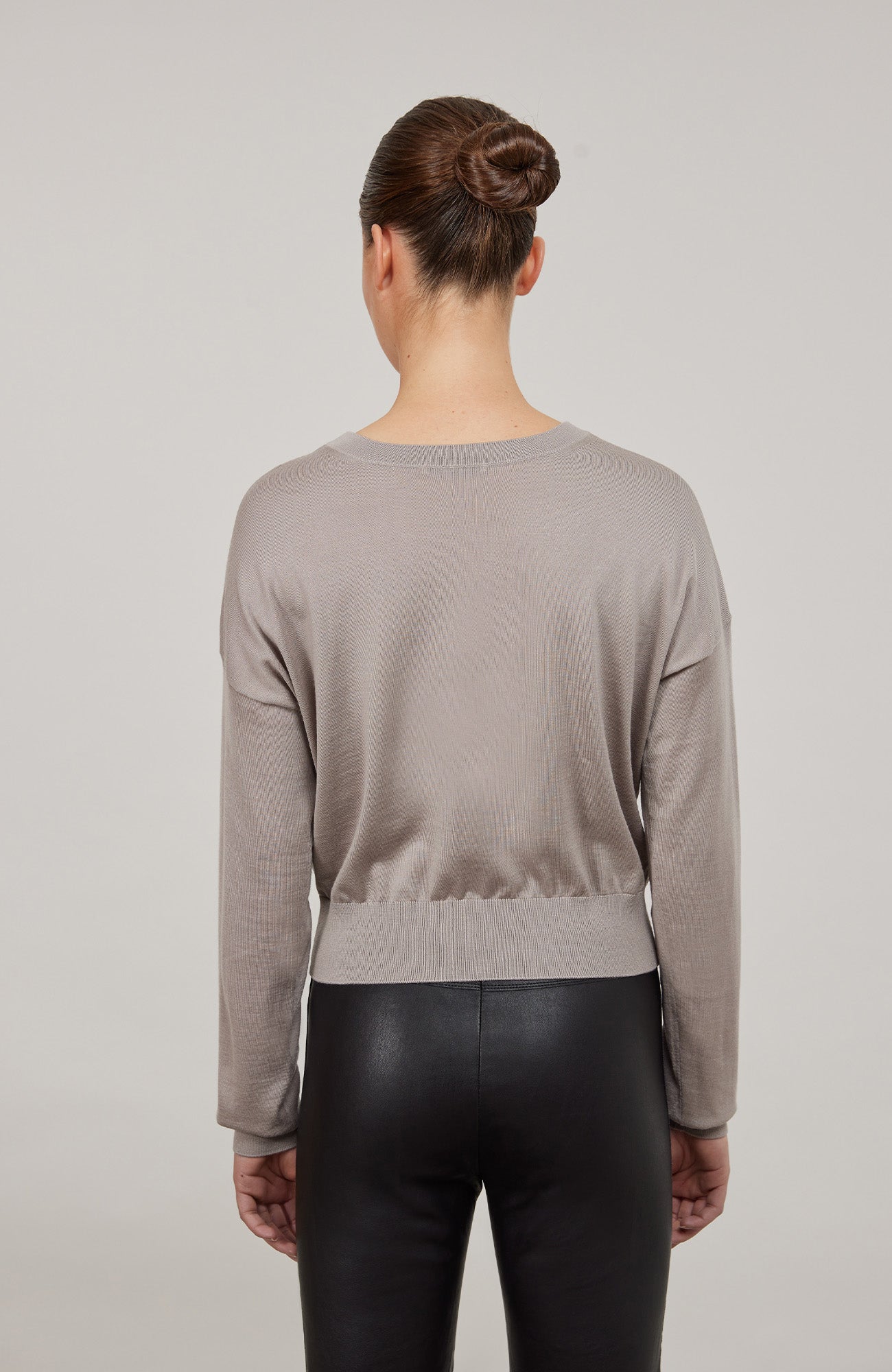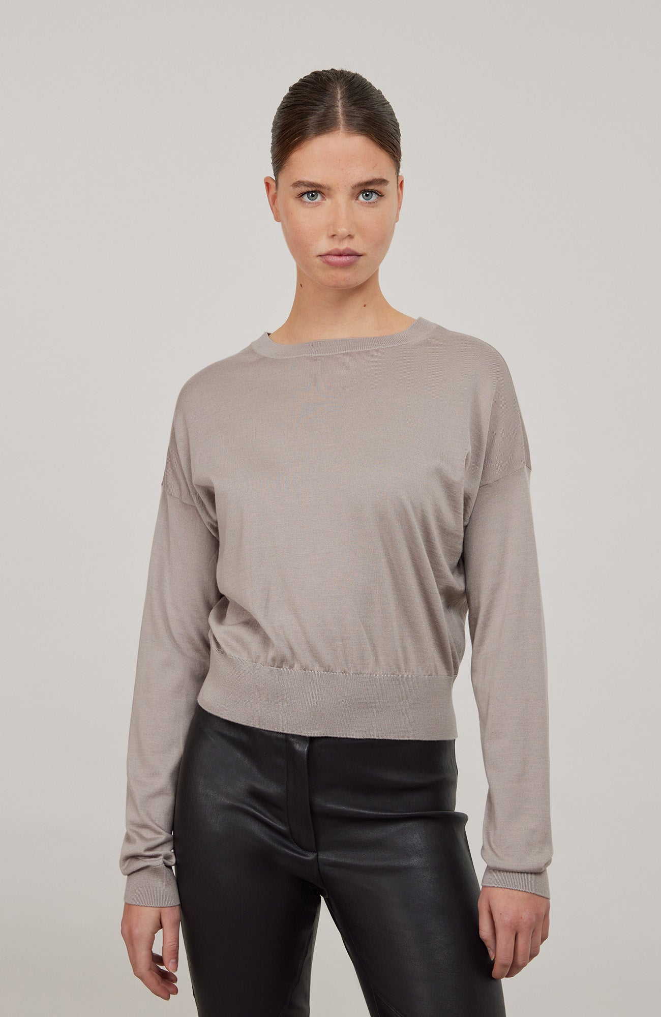 Der Pullover ist etwas lockerer und leger geschnitten und verfügt über einen kürzeren Schnitt mit Rippbündchen an Bund und Ärmeln, die für eine elegante Formstabilität sorgen. Die klassische Rundhalsausschnitt-Form macht ihn vielseitig kombinierbar – ob lässig unter der Jacke wie der Frederika, zu eleganten Hosen oder sportlich zu Jeans – dieser Pullover setzt immer ein stilvolles Statement.